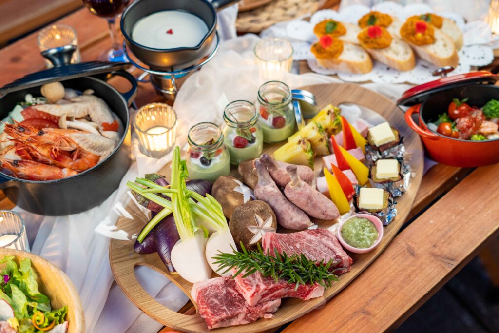 お食事は各ドームの真横に併設されたプライベートダイニングでゆったりとBBQをお楽しみいただけます。